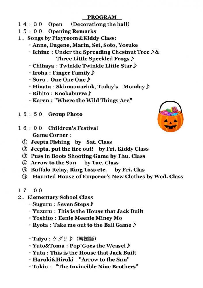 個人発表会(Song,Story telling, Speech)とゲームコーナーめぐりを毎年、開催しています!仮装、お友達の参加、大歓迎です!